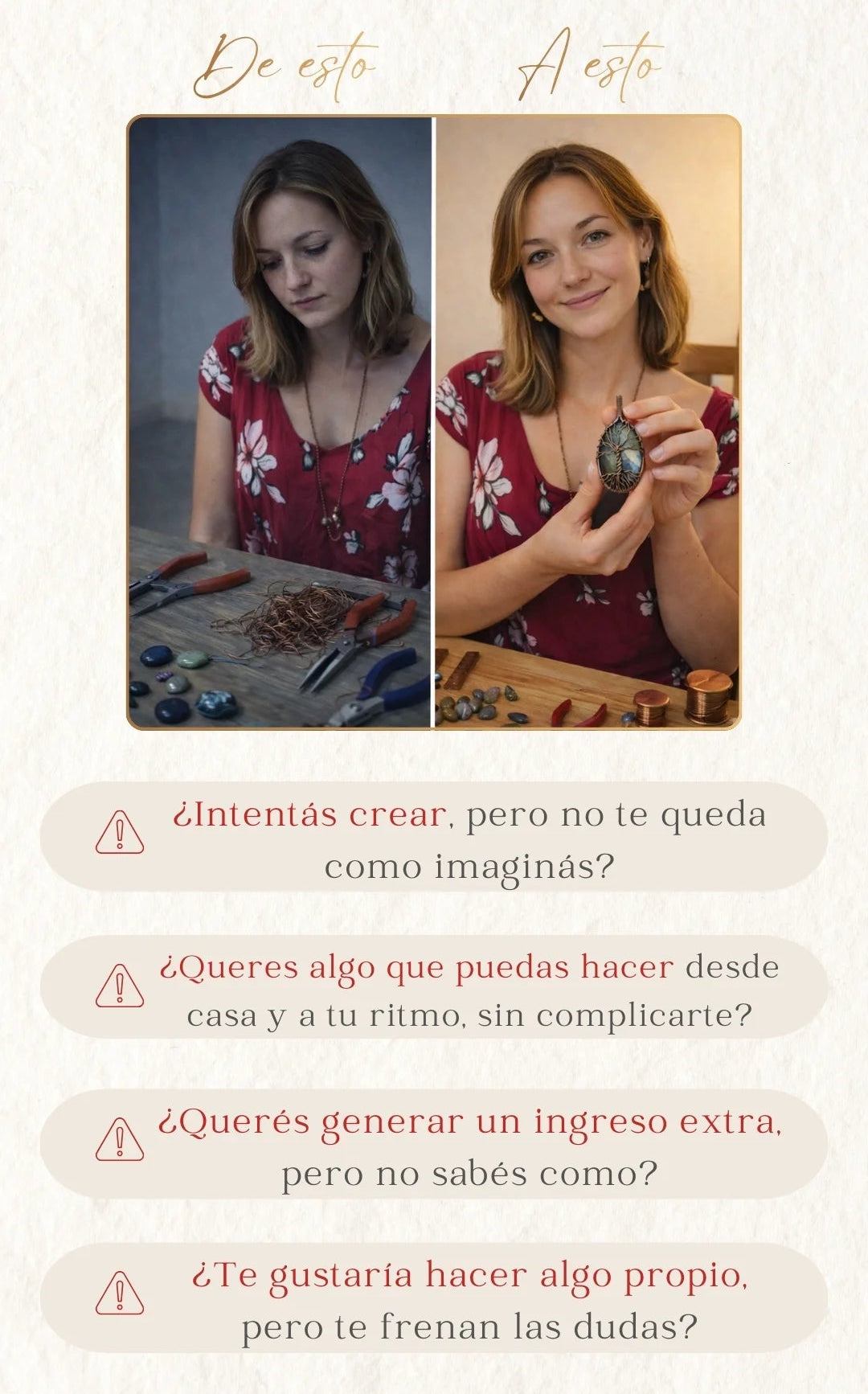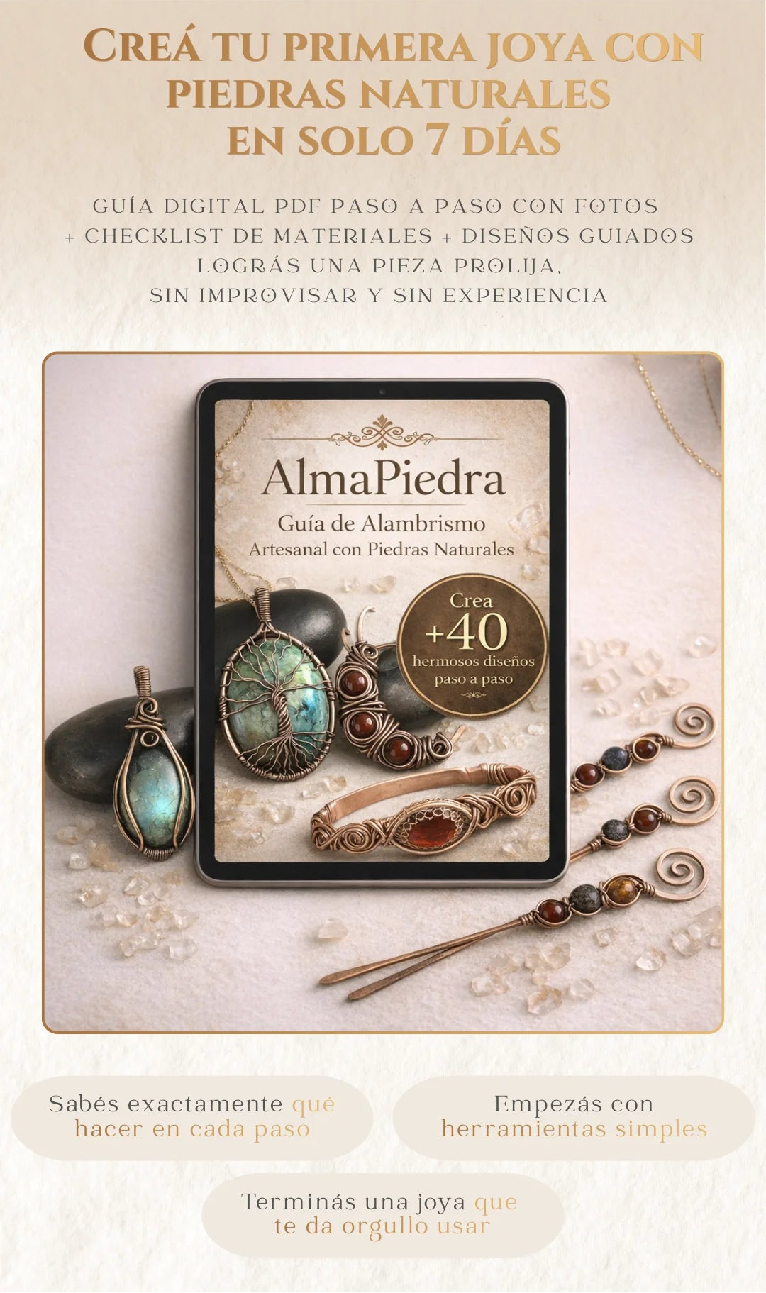 Podés arrancar con lo básico (pinza, alambre y tu piedra) e ir sumando de a poco cuando te sientas cómoda.